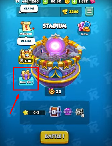 - To claim it, go to the Battle menu and select the option Claim Gift with the gift icon.