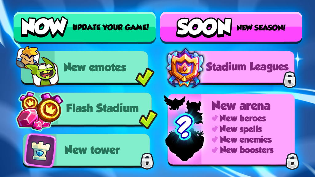 A new arena is coming, packed with fresh enemies, boosters, heroes, and towers, along with major updates to the Stadium system. This will be a big one!