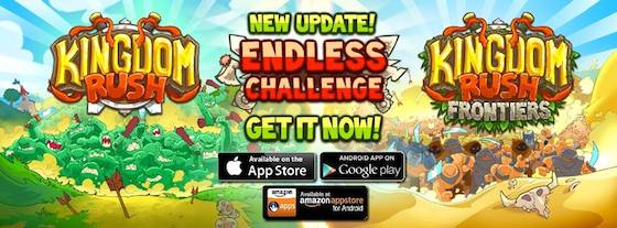 Kingdom Rush Available now! KR and KRF endless mode! by Alvaro Azofra on July 31, 2014 Hi everyone! Endless mode for Kingdom Rush & Kingdom Rush Frontiers is Available Now! Stay tuned! share on Comments