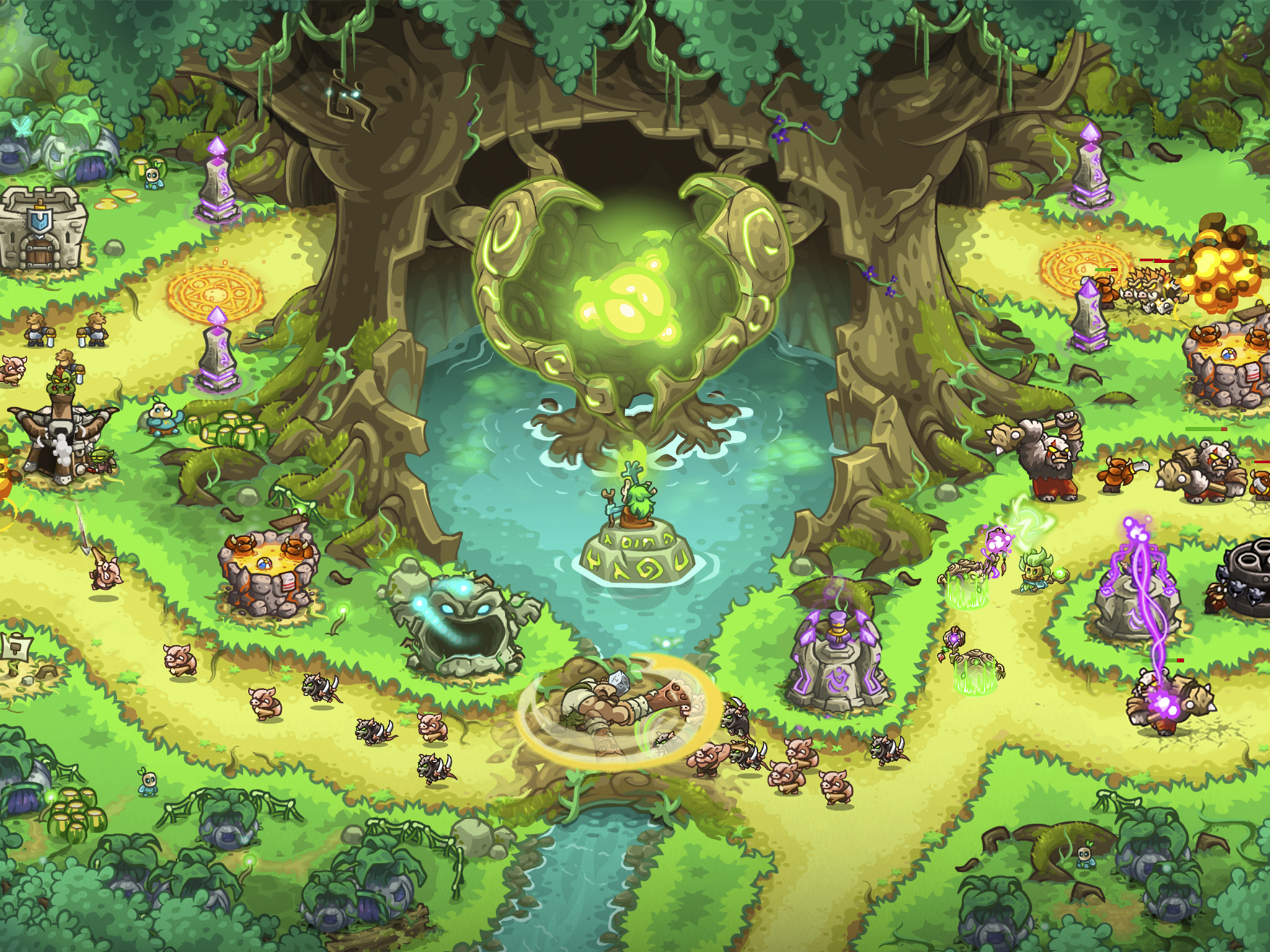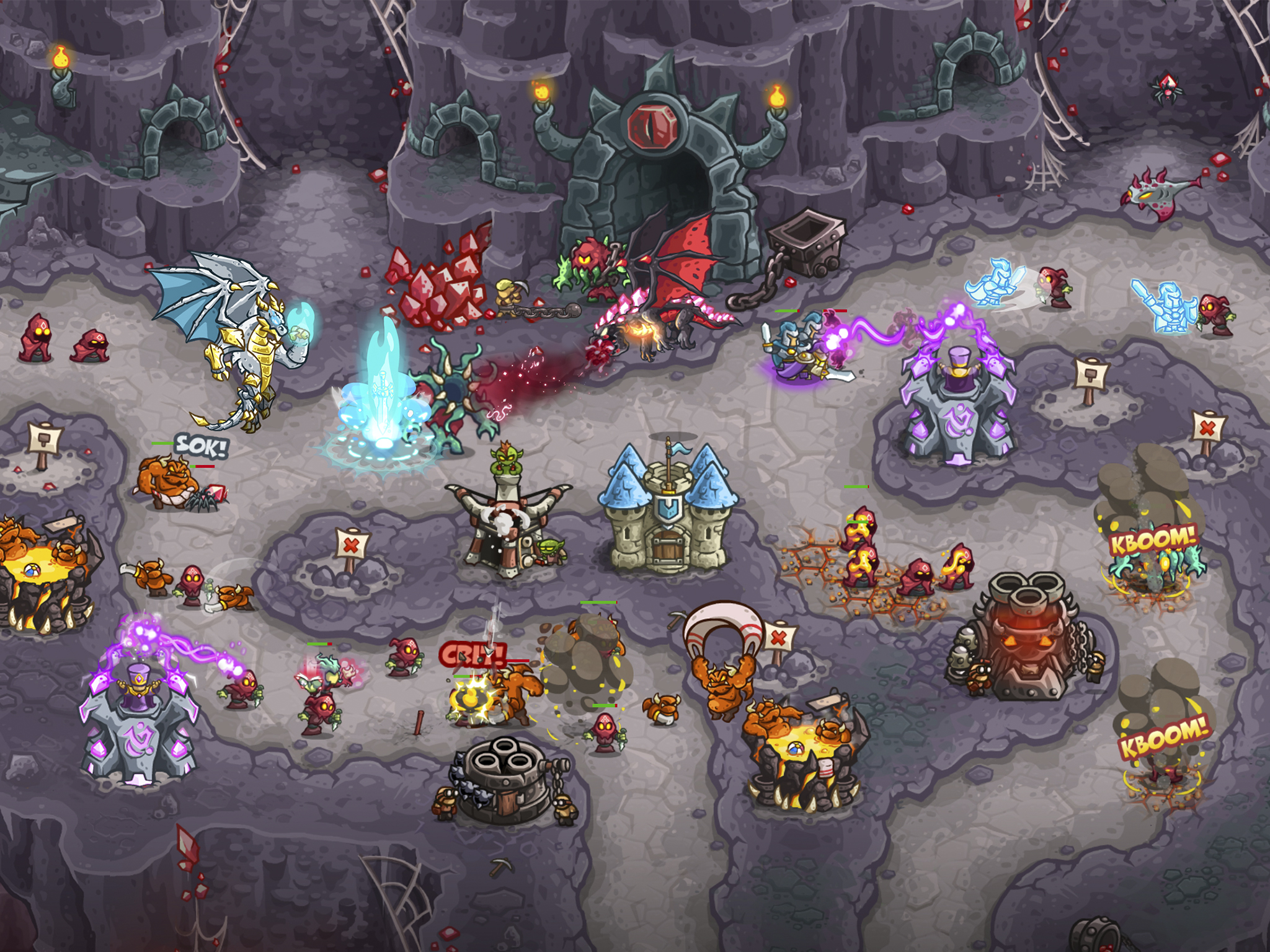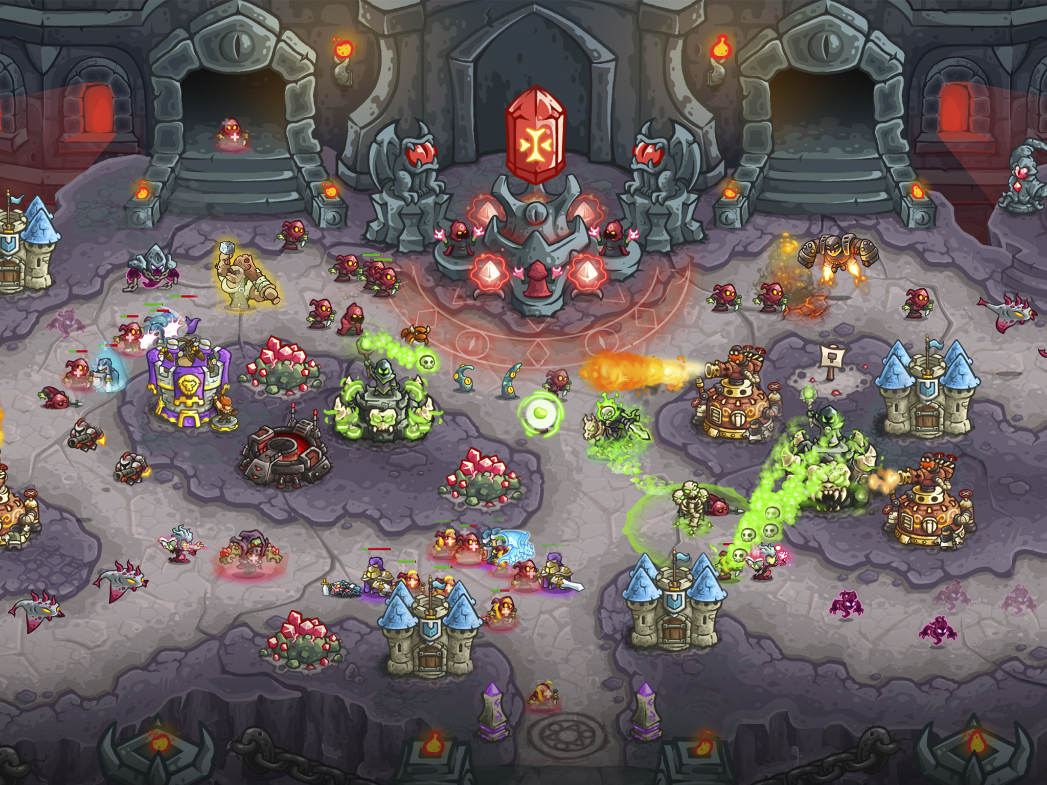 Defend your ground with Kingdom Rush’s signature towers like precise Archers, valiant Paladins, and even trickful Demon Pits; or discover mighty newcomers like the Dwarven Flamespitter or the Eldritch Channelers.